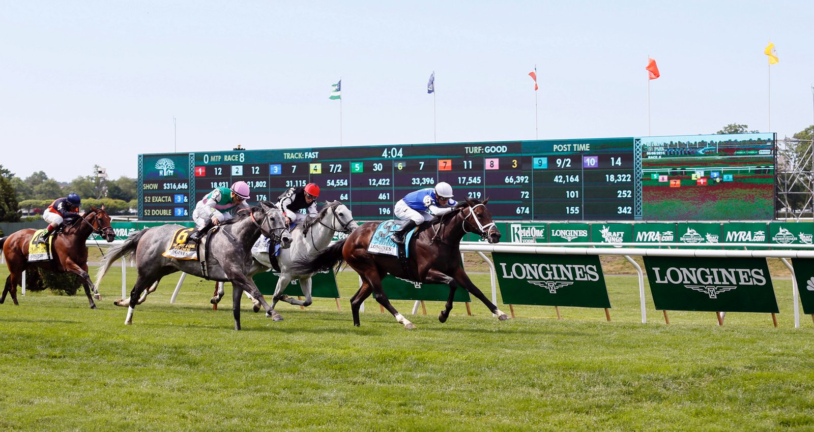 At a half, the Belmont racetrack in Long Island is the longest of the three races (The Kentucky Derby, The Preakness, and The Belmont Stakes). It’s the real test of a thoroughbred racehorse, if you will. We were at Belmont last year (as guests of Longines, the official timing sponsor of the Triple Crown), and saw California Chrome attempt to win the Triple Crown and fail, as so many horses had before.