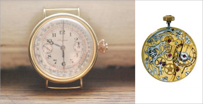 The Longines Monopusher “is closely based on the first wrist chronograph, manufactured by Longines in 1913 and fitted with calibre 13.33Z.” The new model uses caliber L788.2 (ETA A08.261), a column-wheel chronograph movement developed exclusively for Longines – it allows the wearer to activate the start, stop, and reset functions of the chronograph with a single pushpiece. Caliber L788.2 is self-winding and has 27 jewels, a frequency of 28,800 vph (4Hz), and a power reserve of 54 hours.
