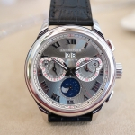The retail price with the black leather strap is $7,640 (Ref. 168570-3001). With a steel bracelet, the watch retails for $9,330 (Ref. 158570-3001).