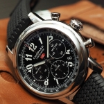 Underneath the dial is an officially COSC certified automatic chronograph movement that runs at 4Hz (28,800 vph), has 25 jewels, and a 46-hour power reserve. Water-resistance is 100 meters thanks to gaskets on the front, rear, and the locking crown.