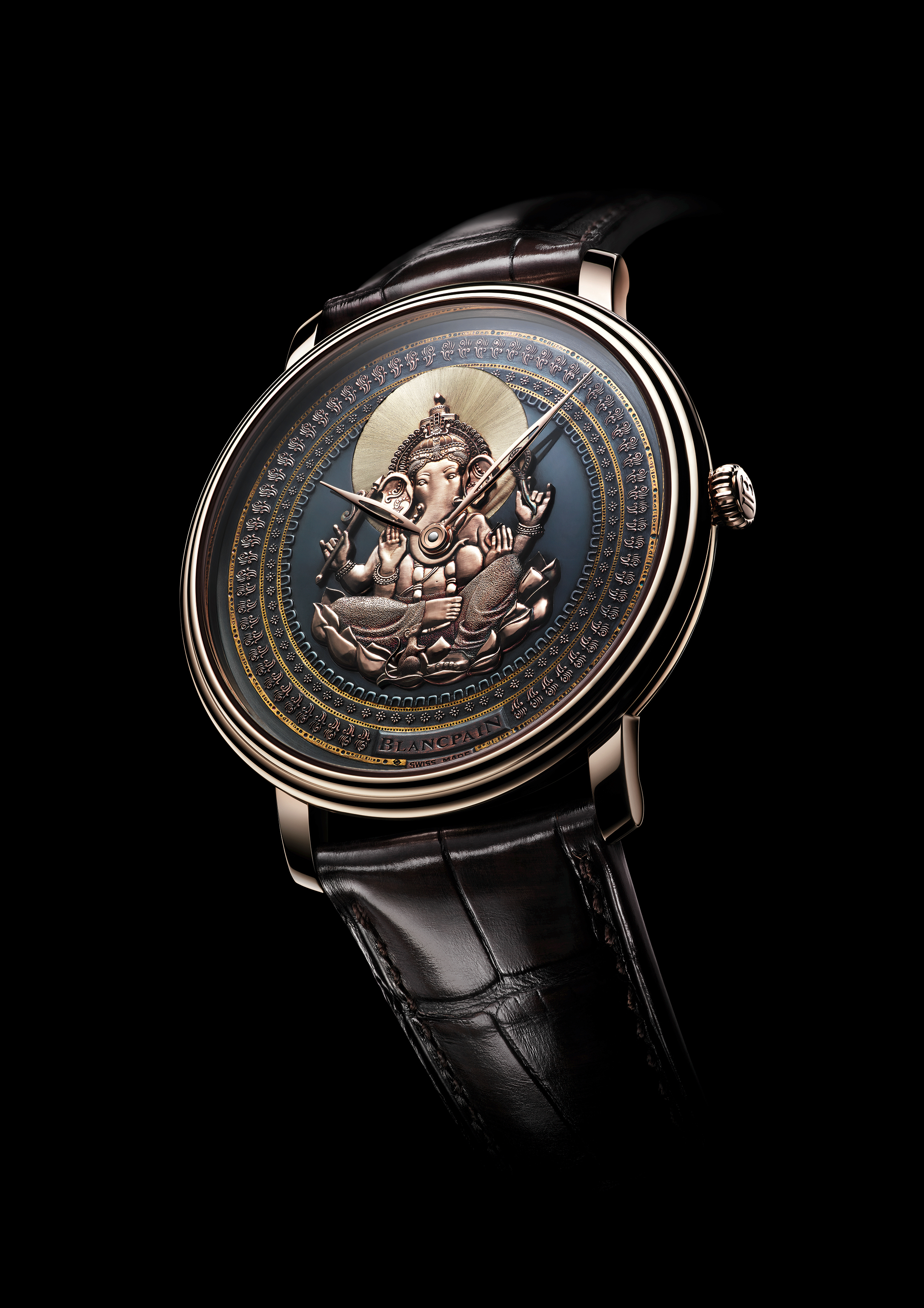 According to Blancpain, “The black patina is obtained following a process called passivation, which calls for the application of a solution. This solution, which is composed of copper acetate (green-gray), has been traditionally fabricated in Japan, where it’s known as rokushō. According to the number of applications of the rokushō solution, the black becomes successively deeper and more intense. The shakudō was used historically, among other things, to create swords, decorative objects, and jewelry. The artisans who practiced shakudō often added engravings and ornaments.”