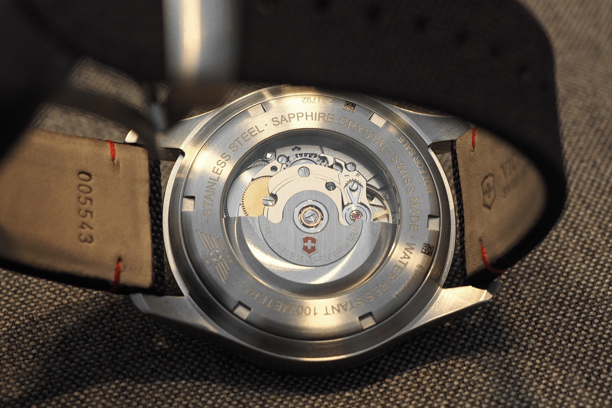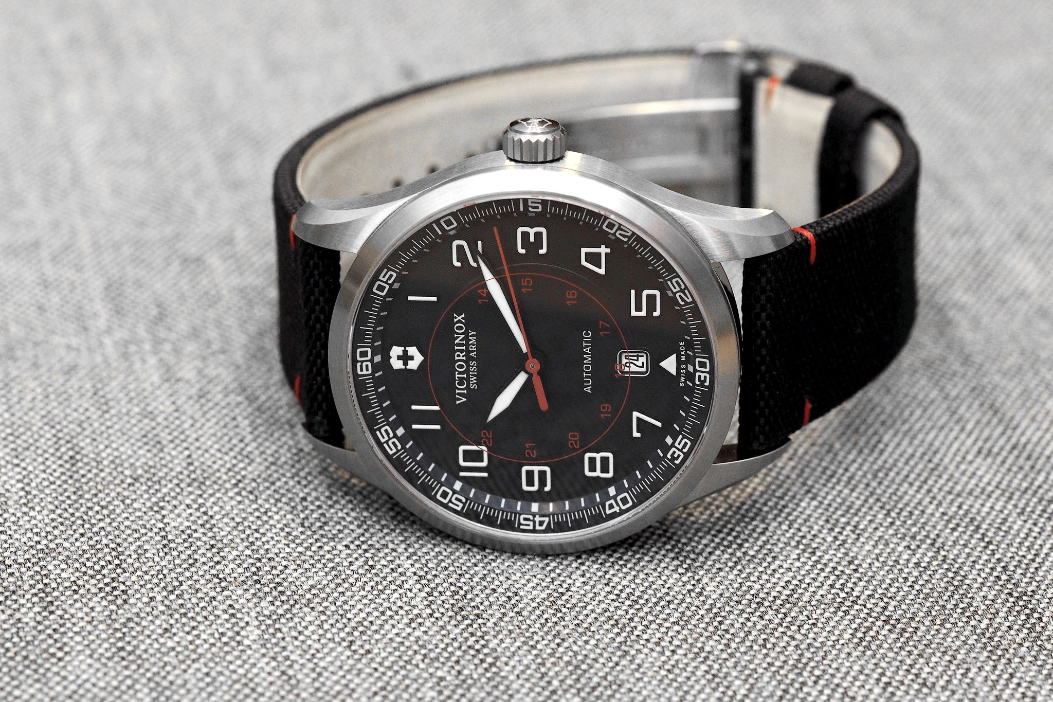Although it is hard to tell, the dial is a dark navy color, not black. A nod to the meticulous attention to detail that goes into designing every Victorinox timepiece, or knife.