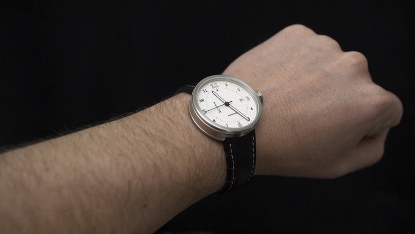 The round stainless steel case measures 40 mm in diameter by 11 mm in height. It has a brushed finish with two polished bands the wrap around the outer case band. The slightly oversized crown is shaped like the Xetum logo. Instead of using lugs to secure the strap to the case, the band is integrated into the case, resulting in a very modern look.