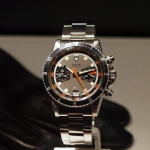 The 42 mm diameter case is round, fully polished and comes in stainless steel with a choice of galvanized dials: blue, grey or brown. All dials have silver digits, rhodium Arabic numbers (12 and 6) and hour indexes with Superluminova coating. Polished, rhodium, thread hour and minute hands with Superluminova coating. Matte lacquer chronograph seconds and split-seconds hand (top hand orange/bottom hand white). Blue counter hands with silver subdials.