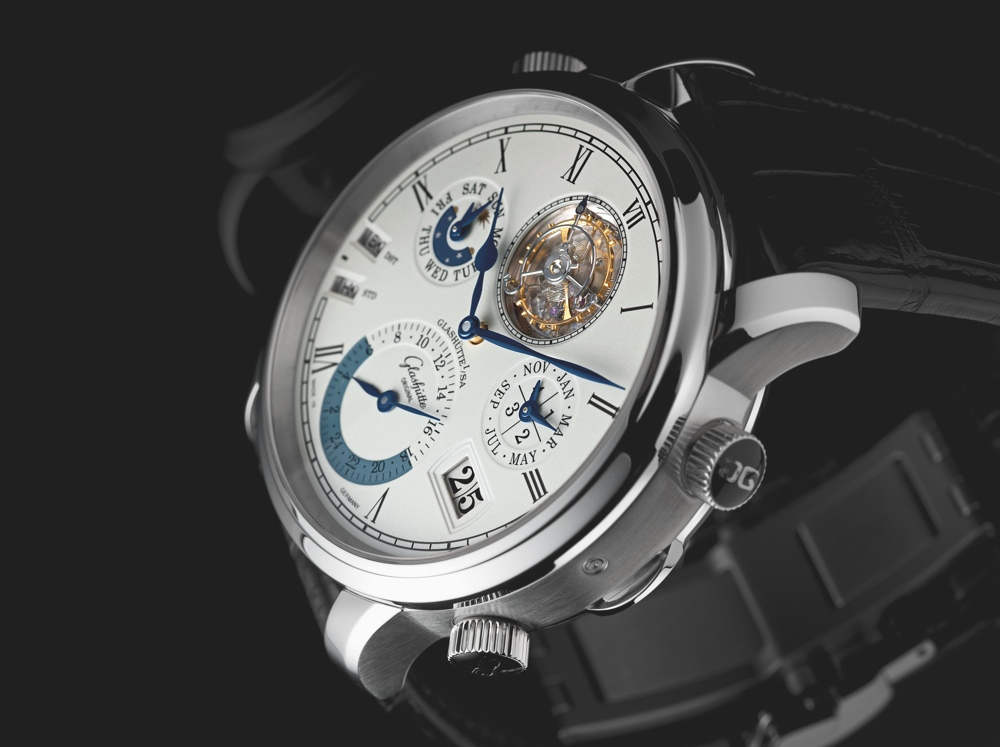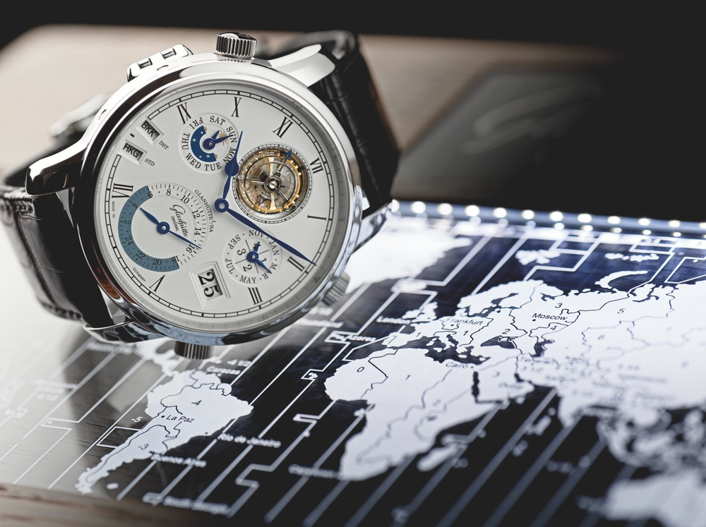 German watchmaker Glashutte Original’s new Grande Cosmopolite Tourbillon comes in a relatively large 48 mm by 16 mm platinum case — at a time when the watch industry is moving towards smaller timepieces — but not without good reason.