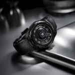 The watch is essentially the same as the award-winning original Logical One but in matte black. To achieve this new aesthetic, the watchmakers at Romain Gauthier implemented a new over-fired black-enamel dial, with an 18K gold base, that was turned gray by hand-frosting. The stainless steel hands are skeletonized and feature a matte black treatment.
