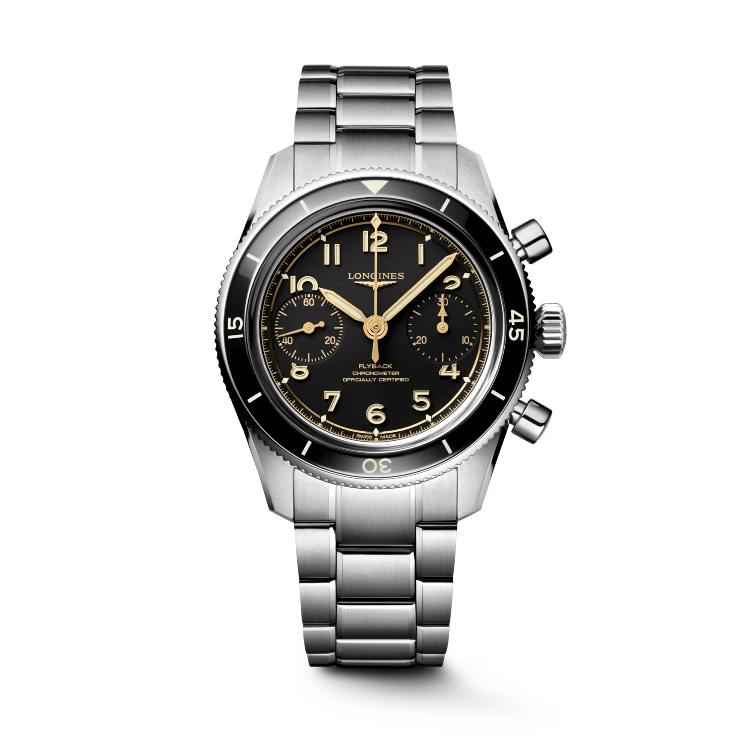 Last but not least, thanks to the new movement, Longines was able to offer this latest generation of Spirit Pilot Flyback Chronograph, in a 316L stainless steel case that measures a proportionally ideal 39.5 mm x 13.4 mm (compared to 42 mm x 17 mm before). The lug-to-lug is 47.4 mm, and the lug width is 20 mm. Longines tastefully added polished to the case flank bevels, to the crown, to the pushers, to the upper rim of the bezel, and in between the center links (on the bracelet version), with everything else receiving brushed surfaces.