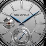 Bart and Tim Grönefeld used an independent dead seconds mechanism that is driven from its own secondary gear train with its own power supply. The seconds are driven from one mainspring barrel and the hours and minutes from another. Friction is with this system guaranteed to an absolute minimum and the complication has no adverse influence on the escapement and free sprung balance.