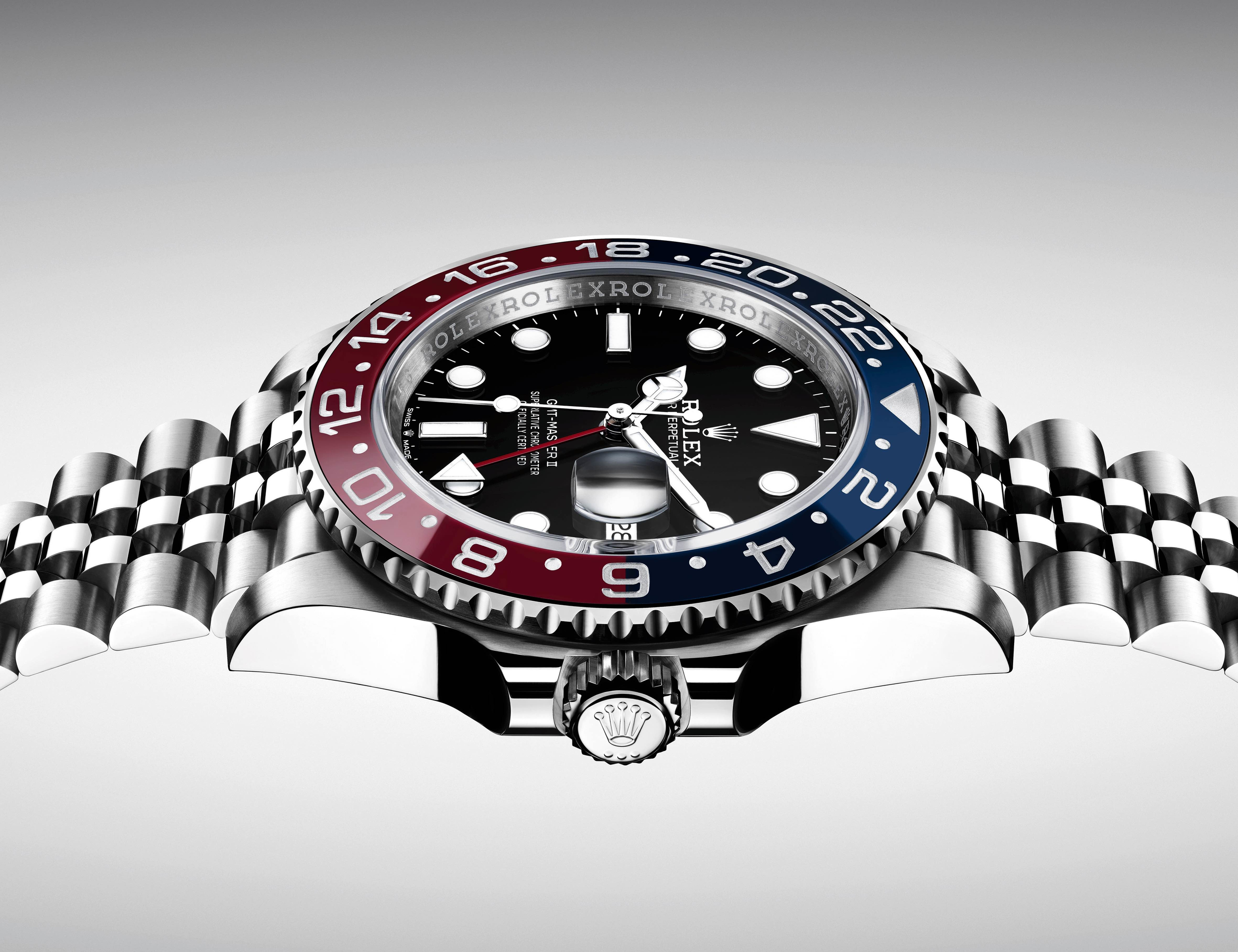 The new Oyster Perpetual GMT-Master II has the same case diameter as before at 40 mm, and the bezel is the same ceramic Pepsi-colored version that was introduced with the white gold GMT-Master II in 2014, there are however a few notable changes apart from the fact that it’s now available in stainless steel.