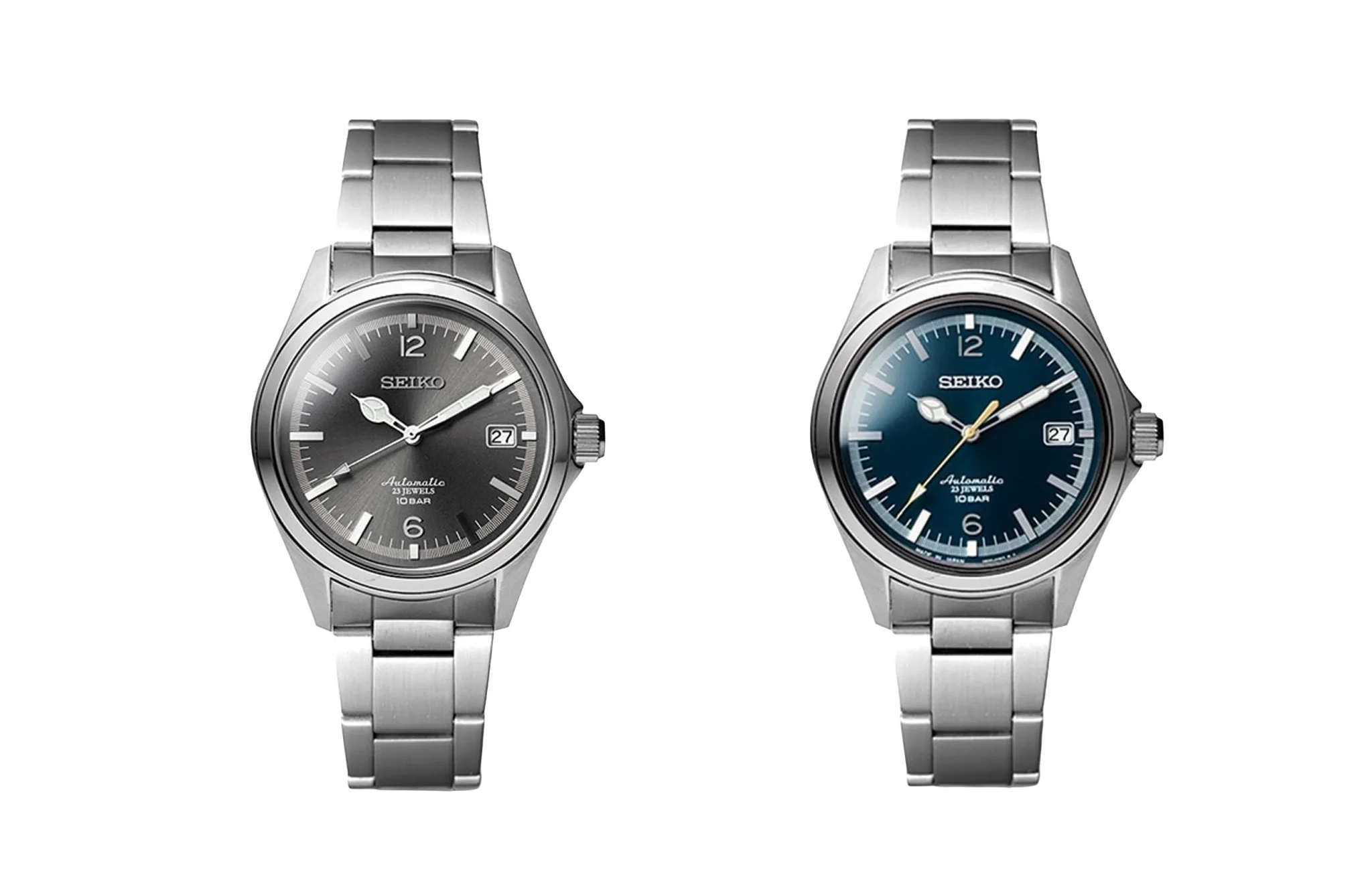 Available in gray or blue-green, with a sunburst dial finish and a cathedral handset, the watch has Rolex Explorer vibes. A stamped stainless steel bracelet is not going to rival anything from premium watchmakers, but again, the aesthetic pleasingly resembles icons, which is how Seiko rolls. Similar to Casio, which gave us this stylish Bamford co-brand last year, Seiko tends to bring some heat with its low-price collaborations