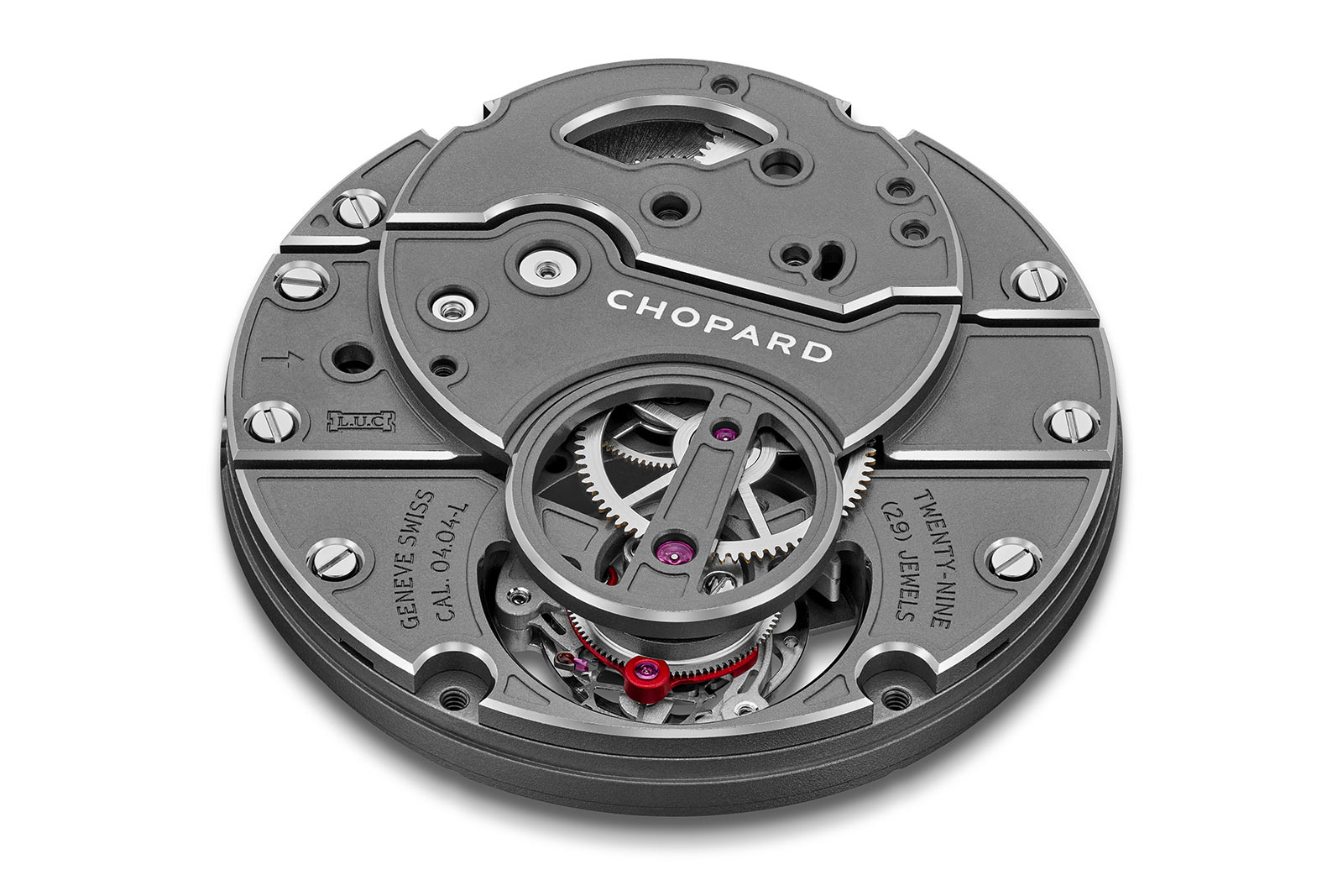 A hand-wound, COSC-certified L.U.C Calibre 04.04-L movement, which includes a 60-second tourbillon with an aluminum carriage to reduce mass. The anthracite ceramized titanium movement mainplate itself serves as the dial, adorned with Zagato’s signature “Z” motif. The edges of the mainplate and bridges have been beveled, rhoidum-plated, and polished for a unique contrasting effect.